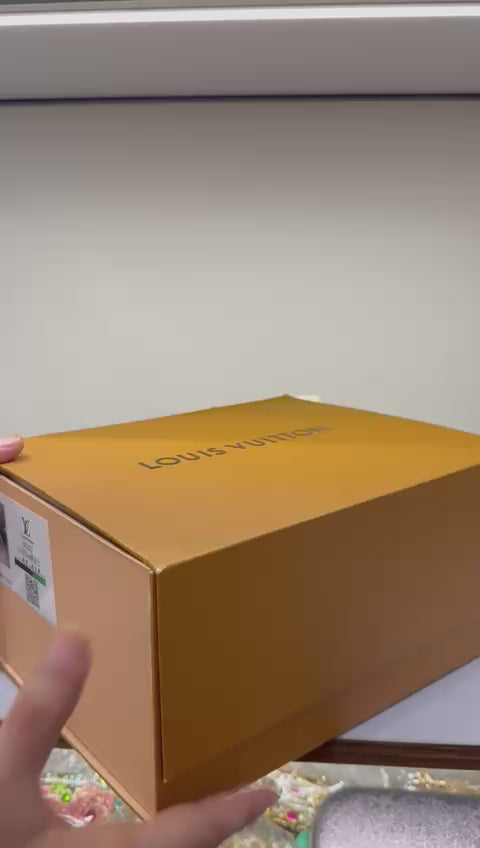 Logo Details: Features the iconic Louis Vuitton stamp at the center and LV Monogram details on the top handles and name tag.
